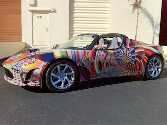 пионер цифрового арта, разрисовал электрокар Tesla Roadster Sport.