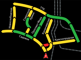На сегодняшний день данные «Яндекс.Пробок» транслируют на трех экранах. Все они располагаются в районе больших перекрестков на Садовом кольце. В частности, дисплеи находятся на пересечении кольца с Баррикадной и Новой Басманной улицами, а также с Большим Левшинским переулком. Информация о заторах транслируется один раз в несколько минут.