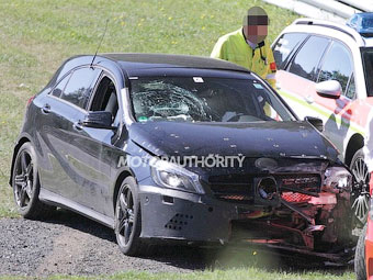Прототип «заряженного» хэтчбека Mercedes-Benz A-Class нового поколения попал в аварию на «Северной петле» Нюрбургринга. Испытатели не справились с управлением и вылетели в отбойник, серьезно повредив левую сторону автомобиля. Об этом сообщает сайт Motorauthority.