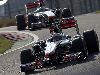 Пилоты команды McLaren Льюис Хэмилтон и Дженсон Баттон стали быстрейшими во второй части тренировок Гран-при Южной Кореи Формулы-1. Послеобеденные свободные заезды прошли на мокрой трассе, хотя дождь закончился в перерыве между сессиями. Лучшие результаты были показаны на промежуточной резине.