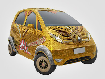 В Индии состоялась премьера самой дорогой малолитражки Tata Nano в мире, полностью покрытой золотом и драгоценными камнями. Автомобиль подготовлен крупнейшей индийской сетью ювелирных магазинов Goldplus в честь пятитысячного юбилея отрасли. Стоимость машины составляет 4,6 миллиона долларов.
