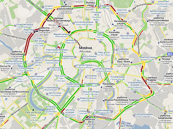 Сервис пробок доступен и для мобильных карт Google. Кроме того, информацию о заторах на дорогах сейчас также предоставляют "Яндекс" и "Рамблер".