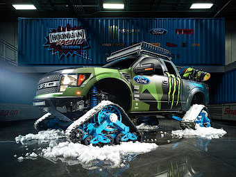 Гоночный коллектив Hoonigan Racing Division, ранее известный под названием Monster World Rally Team, представил пикап Ford F-150 Raptor на гусеничном ходу. Автомобиль впервые покажут публике в конце недели на американском турнире X Games, который пройдет в Аспене (штат Колорадо). В конце текущего года, зимой, машина примет участие в новом видеоролике с Кеном Блоком.