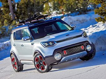 Дорожный просвет концепта увеличен на 65 миллиметров по сравнению с обычным Soul – до 215 миллиметров.
