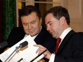 Президент России Дмитрий Медведев и президент Украины Виктор