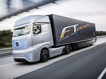 На выставке коммерческого транспорта в Ганновере компания Mercedes-Benz представила свое видение грузовика будущего — концепт Future Truck 2025. Прототип, который производитель назвал «революцией на автомагистралях», оснастили автопилотом и уже испытали «в реальных дорожных ситуациях» на участке немецкой трассы А14 неподалеку от Магдебурга.