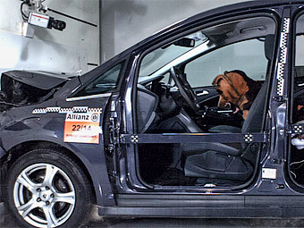 Немецкая страховая компания Allianz провела краш-тест с участием манекенов собак, имитирующих 35-килограммовую овчарку и щенка весом до 12 килограммов (точный вес не указан). Манекены посадили на заднее сиденье автомобиля Ford Fiesta, после чего хэтчбек врезался в стену на скорости 40 километров в час. Видео теста размещено на официальном сайте фирмы.