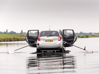 Британское отделение компании Nissan превратило компактвэн Note нового поколения в лодку, чтобы продемонстрировать вспомогательные электронные системы машины.