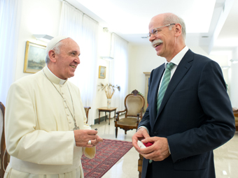 При этом в начале июля глава концерна Daimler Дитер Цетше посетил Ватикан для того, чтобы передать Франциску ключи от нового папамобиля, построенного на базе Mercedes-Benz M-Class. Внедорожник аналогичной модели с переделанной задней частью кузова немецкий автопроизводитель в декабре прошлого года презентовал предшественнику Франциска Бенедикту XVI. Помимо этого, в середине июня компания Harley-Davidson подарила понтифику два мотоцикла.