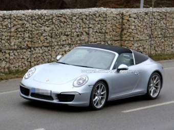 Со снимков видно, что Porsche 911 Targa получит съемный верх. Кроме того, отличительной чертой новинки будет тонкая красная линия между задними фонарями.
