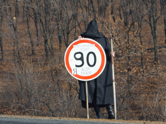 ГИБДД Приморского края провела необычную акцию по борьбе с нарушителями правил дорожного движения. Для привлечения внимания водителей к проблеме частого превышения скорости ведомство поставило на обочину одной из дорог дежурить человека в костюме Смерти.