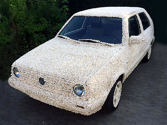 Студент Бранушвейгского художественного университета Лукас Даненль полностью покрыл попкорном хэтчбек Volkswagen Golf 1983 года выпуска. По словам автора, проект сделан для того, чтобы вызвать у людей его поколения воспоминания о беззаботном детстве и юности. Об этом сообщает издание Periodismo del Motor.
