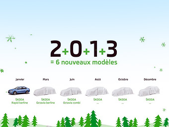 Компания Skoda приготовила к 2013 году шесть новинок: это будет доступный лифтбэк Rapid, как минимум две модификации новой «Октавии», а также еще три модели, чьи названия пока не уточняются. Информация об этом была опубликована французским подразделением Skoda в одной из социальных сетей.